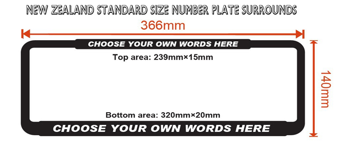 We can personalise your number plate surrounds with any text/logo/design of your choice.They fit standard size New Zealand number Plates.